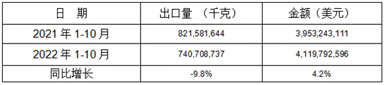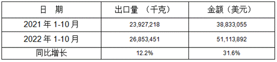 表 11:2022年1-10月同比出口情況