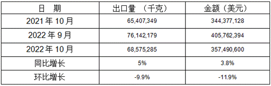 表 3:2022年10月同比、環(huán)比出口情況